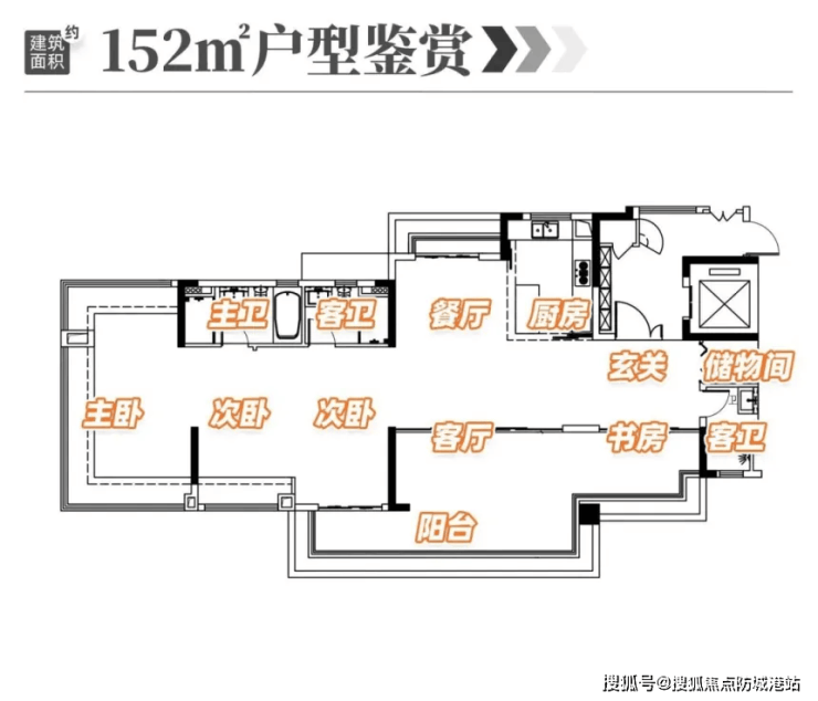 152㎡四房三卫:一梯一户纯板楼,南向面宽超12米,全景视野无遮挡,总价788万元起,改善终极之选。